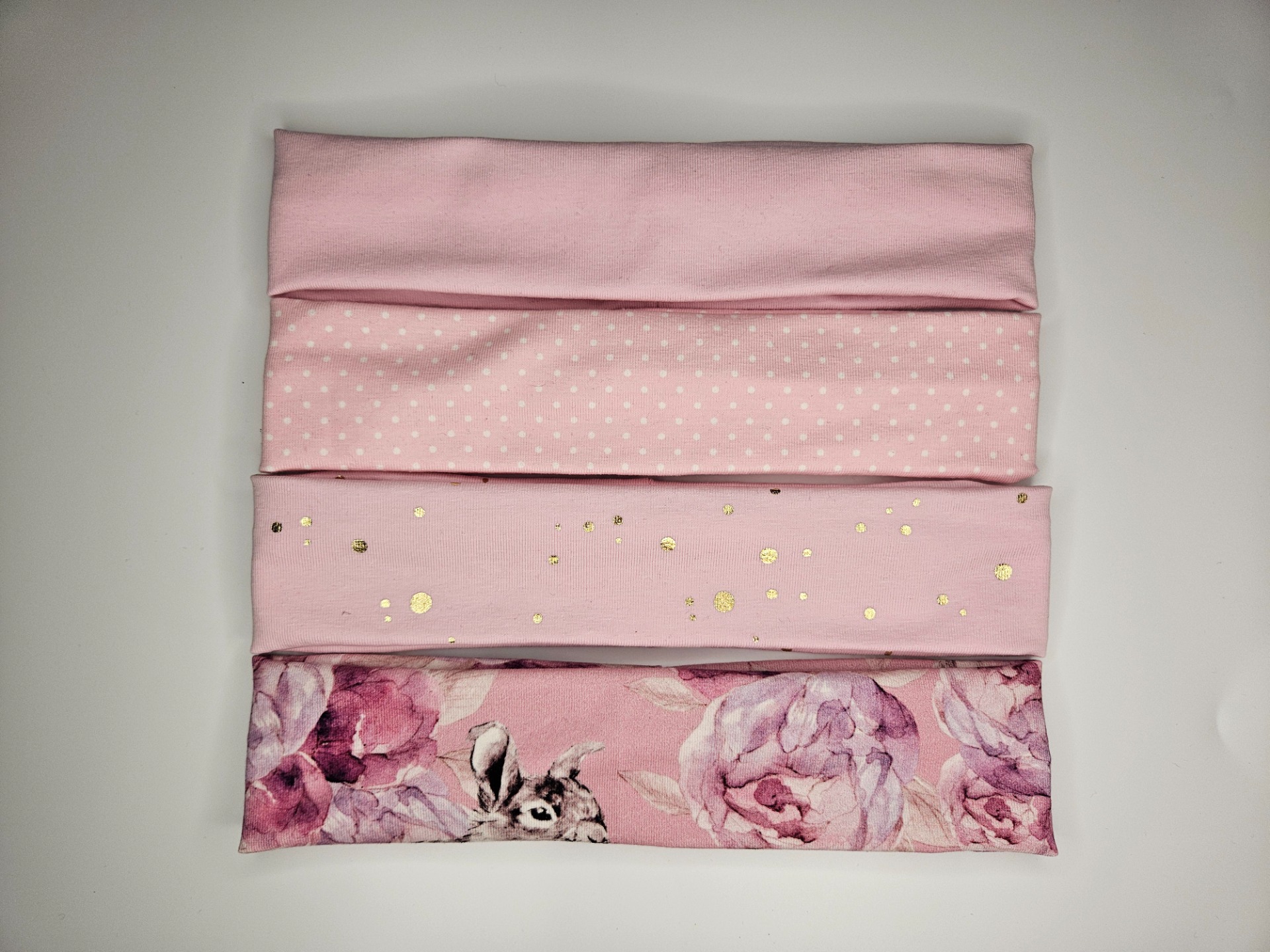 Ihana rusettipanta! Kolme erilaista kuosia: Kultaiset pallot, Isot kukat (pinkki/harmaa) tai Bambi ja kukat (marjapuuron värinen kangas). Hinta 19,-